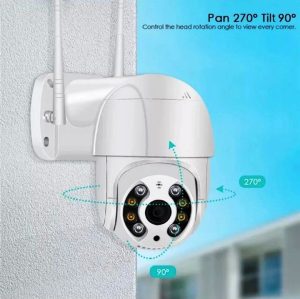 4 მეგაფიქსელი უსადენო Wifi ( 2.4 MHZ ) ჭკვიანი სათვალთვალო კამერა, PTZ :ბრუნავს 270 ჰორიზონტალურად და 100 გრადუსი ვერტიკალურად, H265X, მოძრაობის დეტექტორით, ორმაგი ღამის ხედვით.ორმხრივი აუდიო სისტემა